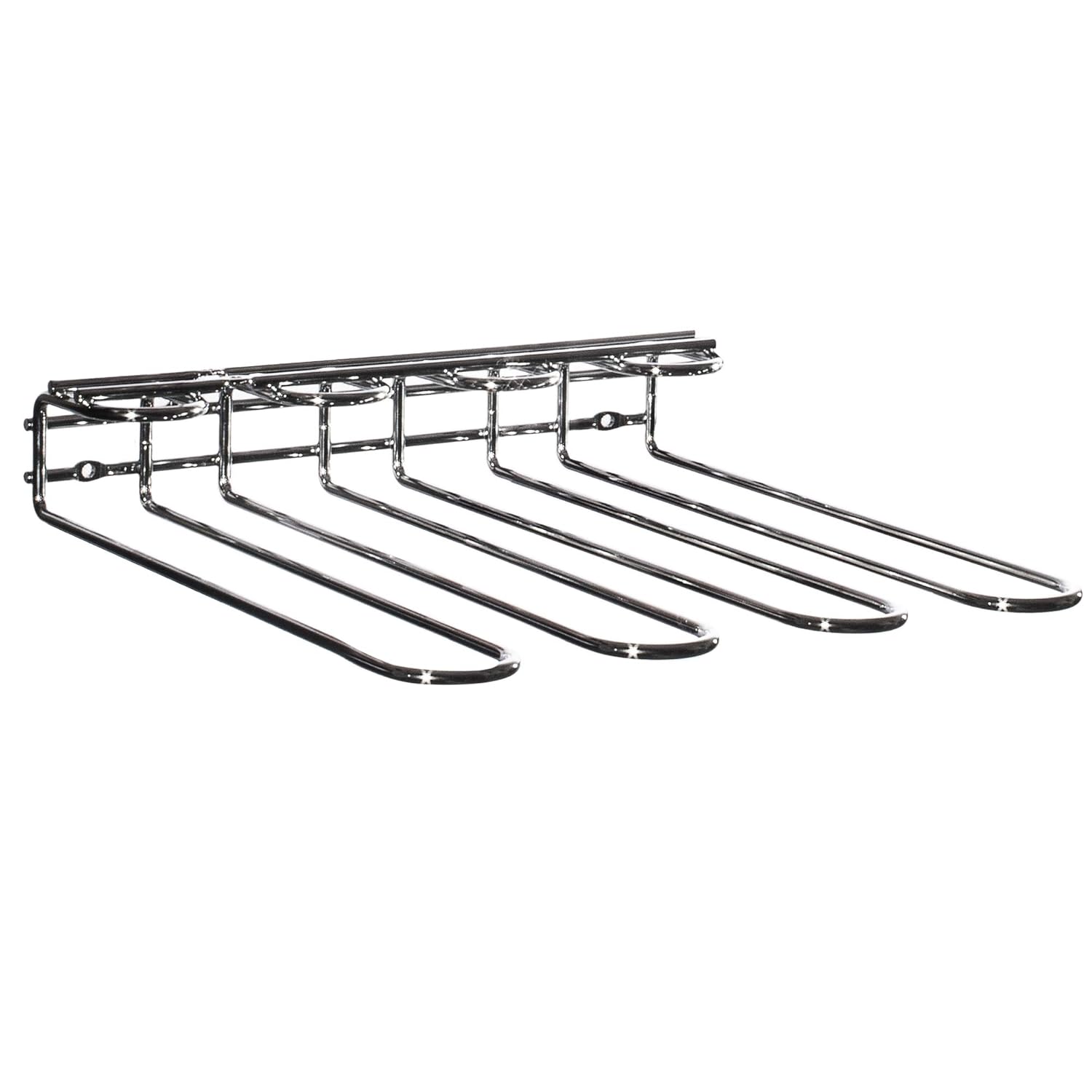 These bar glass racks are perfect for stemware such as wine glasses, margarita glasses and martini glasses wall mounted glass rack. Simple and chic, the chrome finish glows to reflect your collection of crystal stemware.